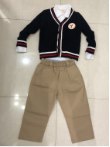 3 | 秋季禮服套裝 | 本次采購的春秋季禮服三件套園服男女均為精梳棉襯衫+卡其色長(cháng)褲或裙+開(kāi)衫毛衣,襯衫為白色,襯衫及開(kāi)衫毛衣胸前縫制幼兒園標識,要求雙線(xiàn)刺繡工藝,清晰精細。開(kāi)衫為深藏青毛線(xiàn)針織,前有鈕扣并襯紅白條毛線(xiàn)邊,不掉色不脫落,褲或者裙為卡其色100%全棉布,女裙需要加襯布,所有材料質(zhì)量達安全環(huán)保標準。 | 套 | 男女 各1套 |