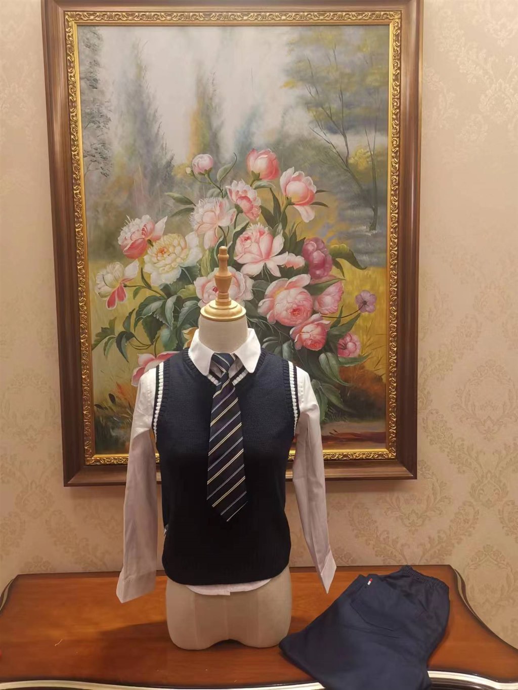 英倫風(fēng)春秋裝 (一套) | 男生為襯衫、領(lǐng)帶、毛紗背心、長(cháng)褲四件套; 女生為襯衫、領(lǐng)花、毛紗背心、長(cháng)褲四件套。 襯衣左胸口印有學(xué)校LOGO。 其中: 襯衫:材質(zhì)為60%棉、40%聚酯纖維; 毛紗背心:材質(zhì)為100%棉; 男/女生長(cháng)褲:材質(zhì)為60%棉,40%聚酯纖維; 男領(lǐng)帶/女領(lǐng)花:均為仿真絲; 耐水色牢度≥4-5、耐酸汗漬色牢度≥4-5、耐堿汗漬色牢度≥4-5、耐干摩擦色牢度≥4-5、耐濕摩擦色牢度≥4-5。 |