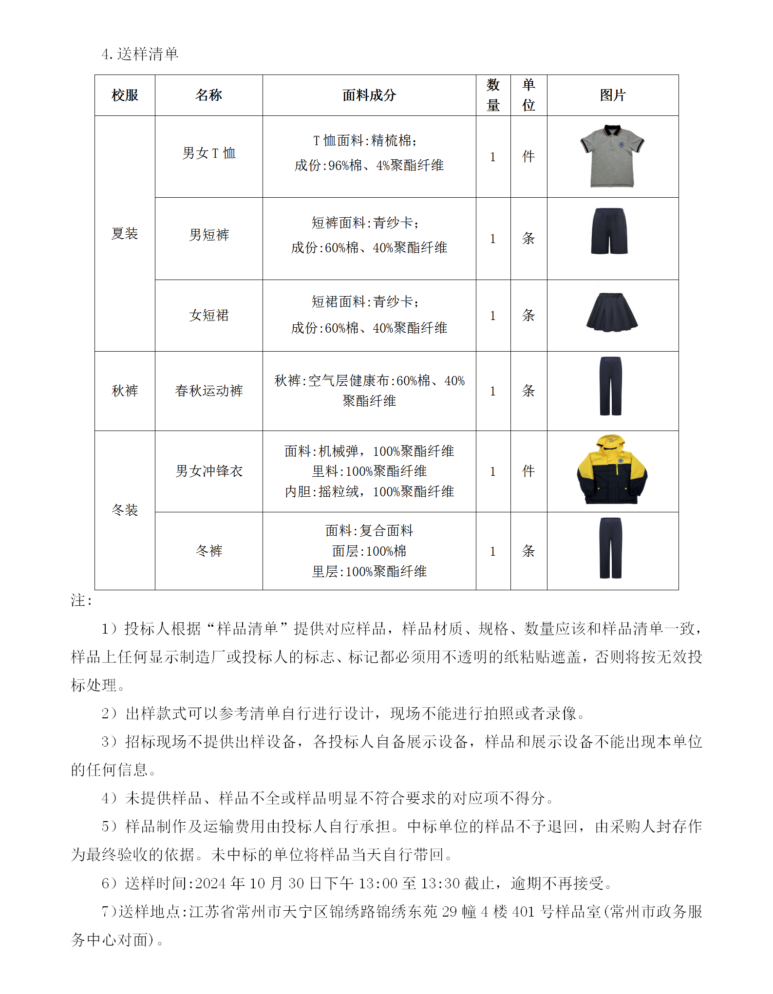7)送樣地點(diǎn):江蘇省常州市天寧區錦繡路錦繡東苑29幢4樓401號樣品室(常州市政務(wù)服務(wù)中心對面)。